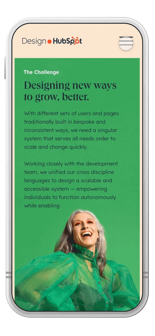 I was invited by the push the limits of HubSpot's all new brand toolkit within an interactive case study, showcasing system flexibility and content that connects with designers and developers.